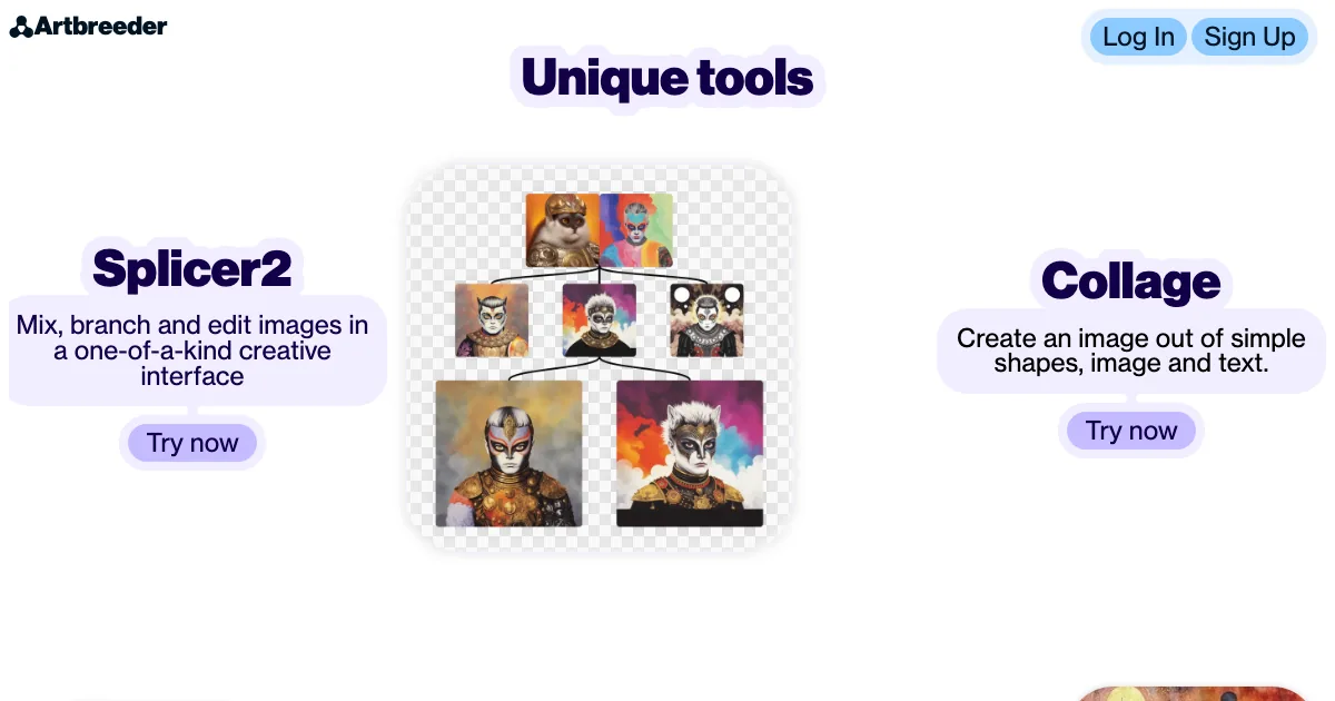 Artbreeder é uma ferramenta de IA da subcategoria geração de imagens que ajuda equipes e criadores a transformar prompts em artes, conceitos visuais e peças criativas com mais velocidade.