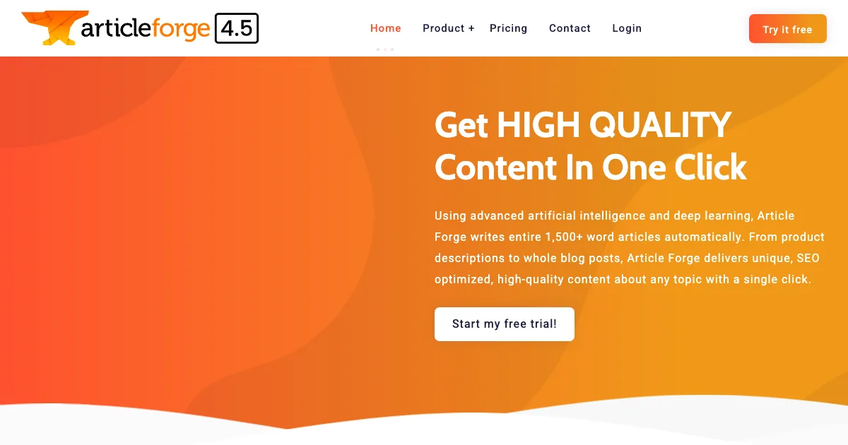 Article Forge é uma ferramenta de IA da subcategoria artigos com ia que ajuda equipes e profissionais a criar conteúdo, otimizar seo e automatizar tarefas com mais eficiência.
