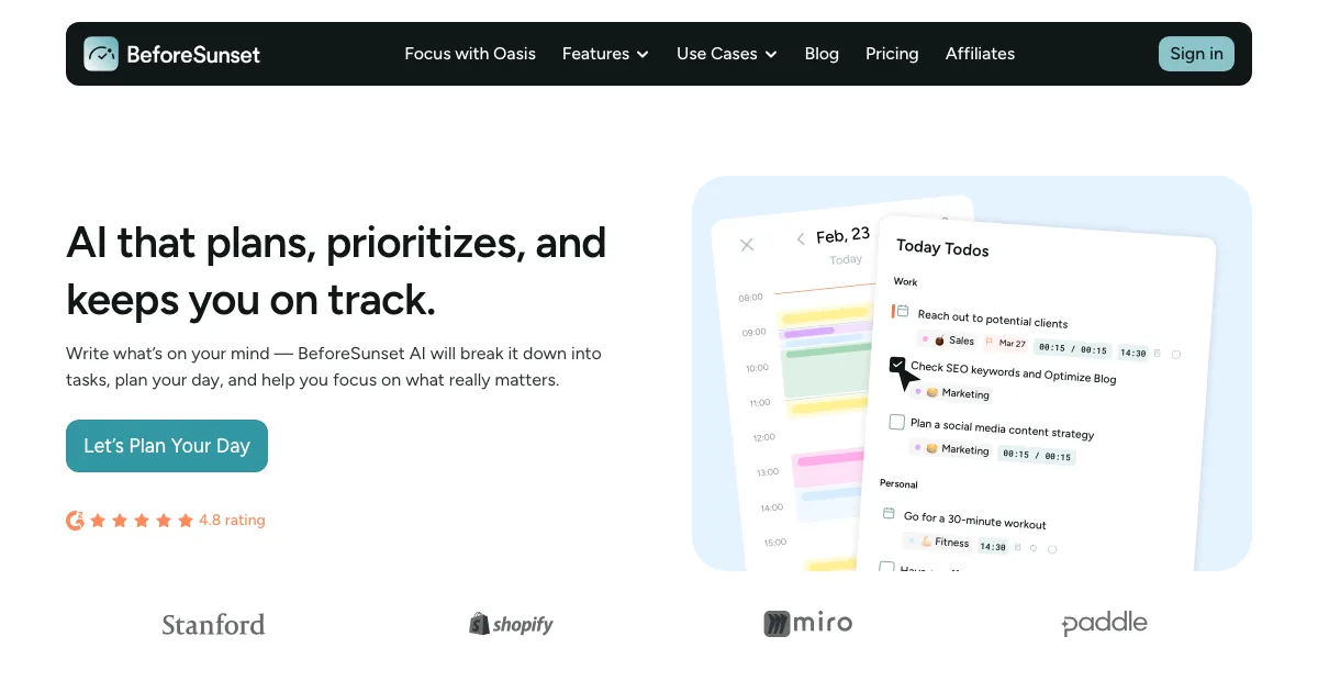 BeforeSunset AI é uma ferramenta de planejamento diário que usa inteligência artificial para acelerar trabalho, organizar informações e automatizar tarefas do dia a dia.