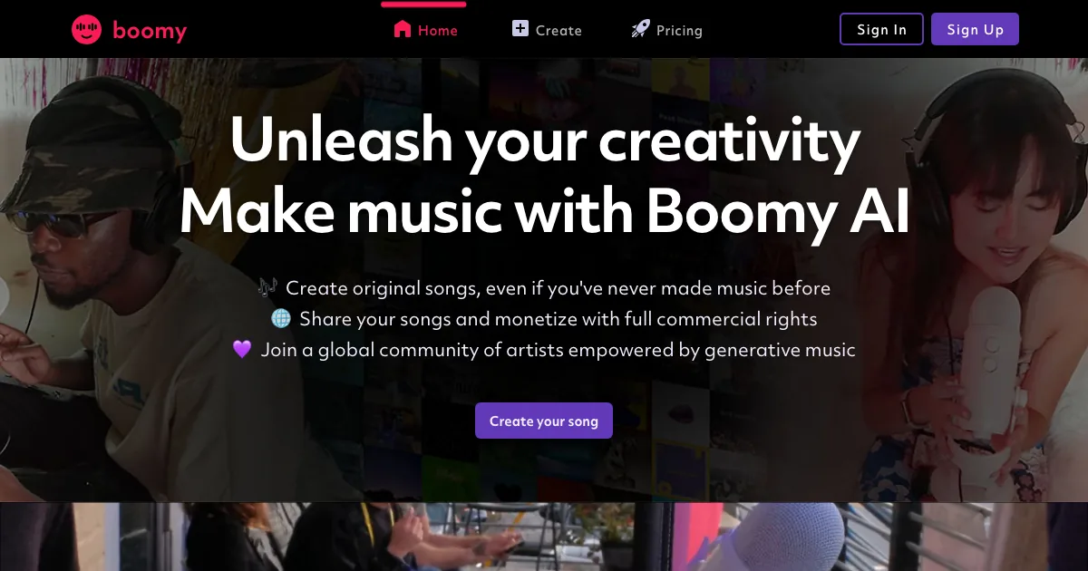 Boomy gera músicas e trilhas com IA para vídeos, jogos, podcasts e projetos criativos sem exigir produção musical avançada.