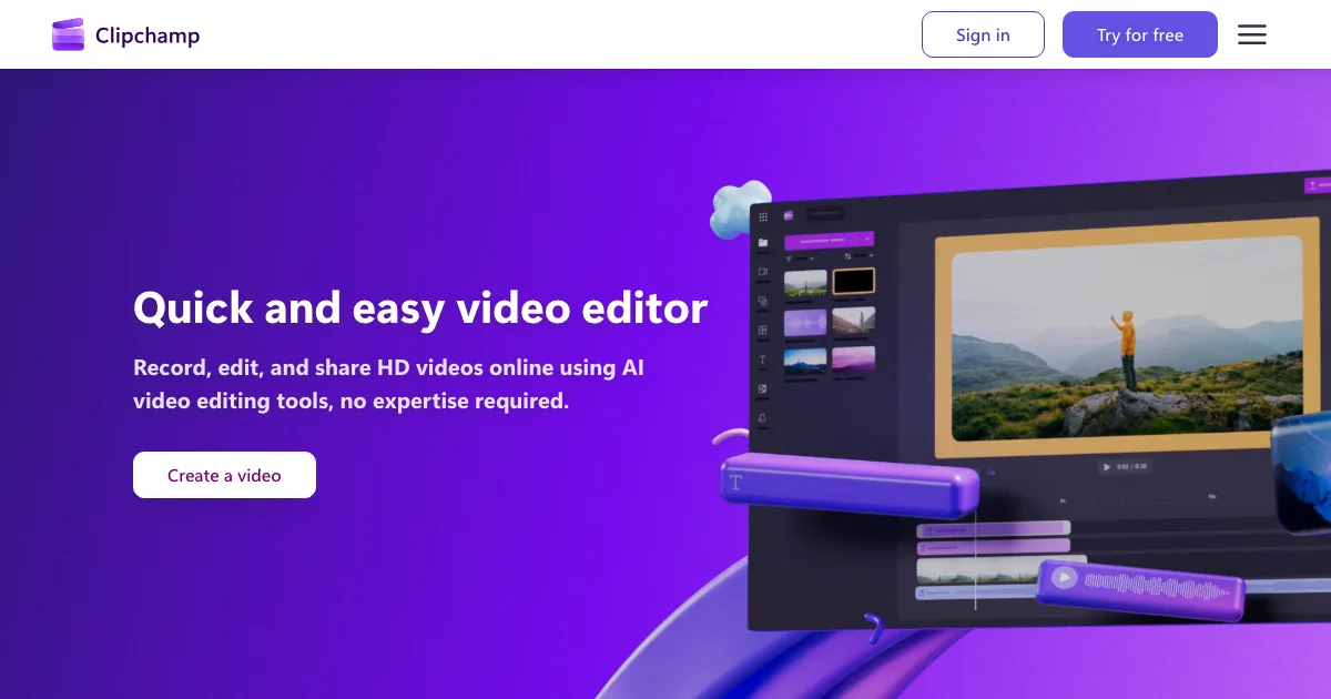 Clipchamp é uma ferramenta de edição de vídeo com IA que acelera cortes, legendas, ajustes de áudio e adaptação para redes sociais.