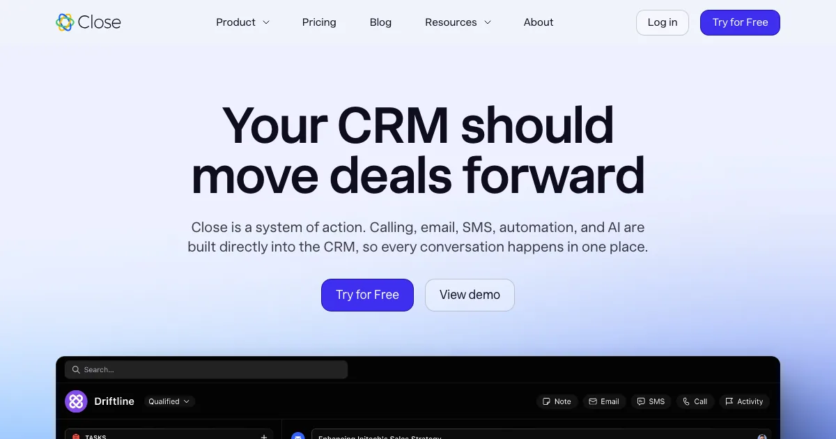 Close CRM é uma plataforma de CRM e automação de vendas que ajuda equipes a organizar o funil de vendas, automatizar follow-ups e centralizar dados de clientes. Nos dados coletados, a ferramenta destaca recursos como CRM com IA, gestão de pipeline e automação de vendas.