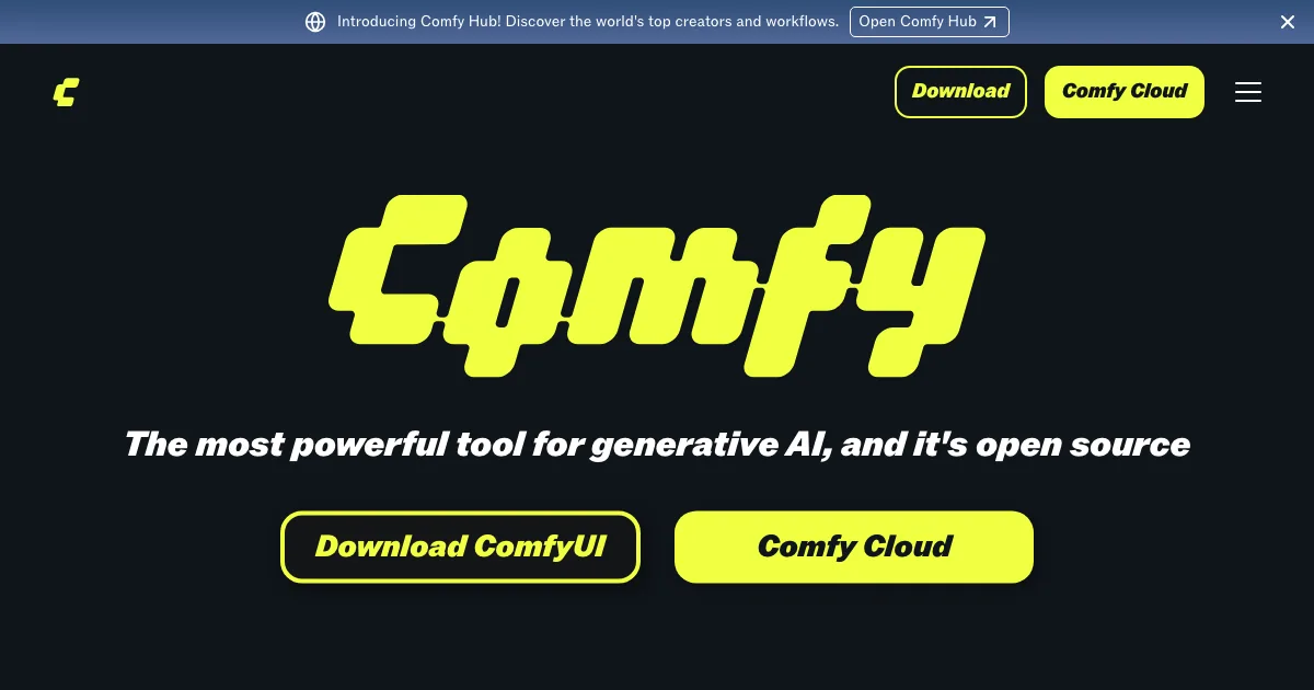 ComfyUI é uma ferramenta de IA da subcategoria fluxos open source que ajuda usuários avançados a montar pipelines de geração e edição visual.