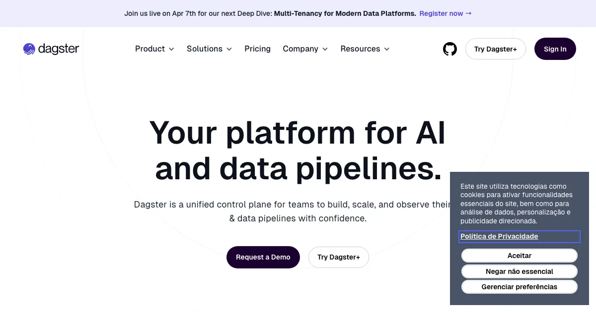 Dagster é uma solução para construir agentes, apps com LLM e fluxos de IA com mais controle técnico. Costuma ser usada por times que precisam combinar prompts, ferramentas, memória, RAG e ações em produção.