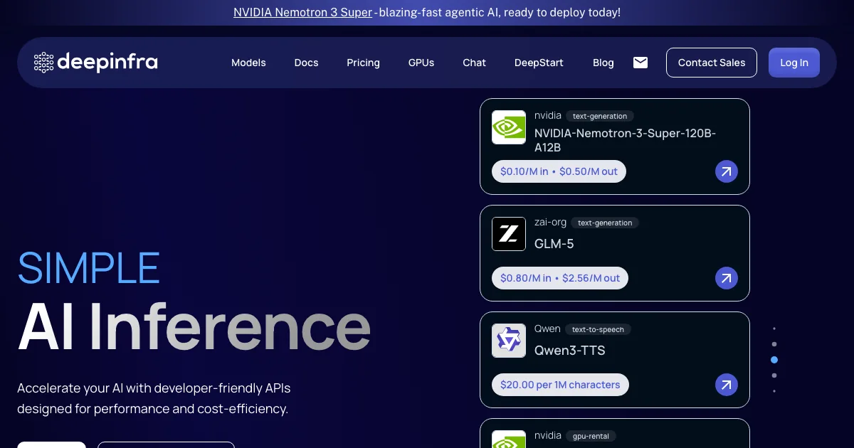 DeepInfra oferece infraestrutura, APIs ou serviços para servir modelos, escalar inferência e integrar IA em produtos. É indicada para times técnicos que precisam de performance, flexibilidade e deploy confiável.