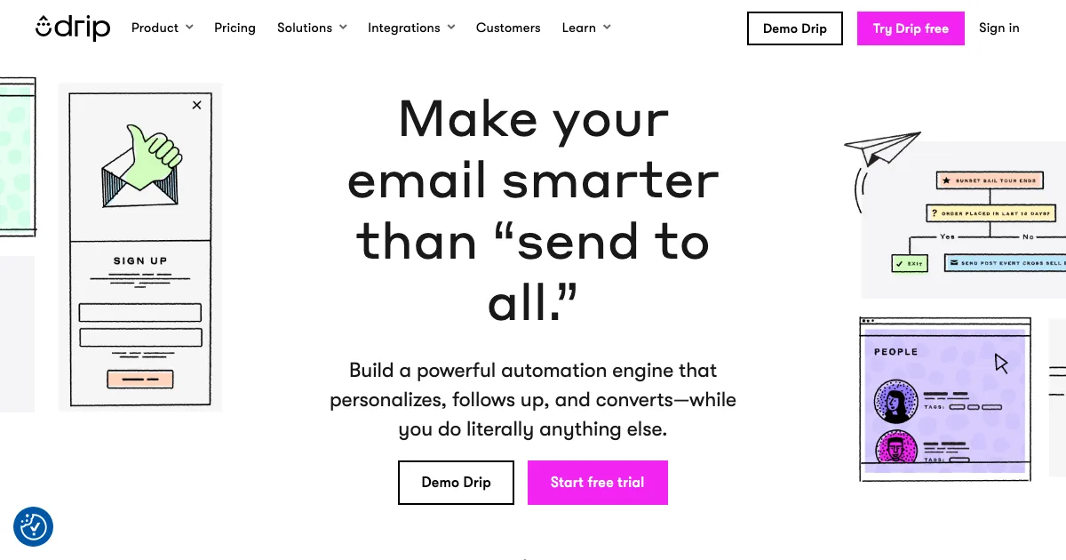 Drip é uma plataforma de email marketing e automação que ajuda equipes a criar fluxos de nutrição, enviar campanhas segmentadas e automatizar jornadas de onboarding e retenção. Nos dados coletados, a ferramenta destaca recursos como Duration1 hour, Durationsession e Duration1 year.