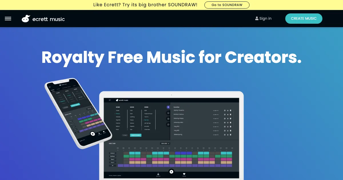 Ecrett Music gera músicas e trilhas com IA para vídeos, jogos, podcasts e projetos criativos sem exigir produção musical avançada.