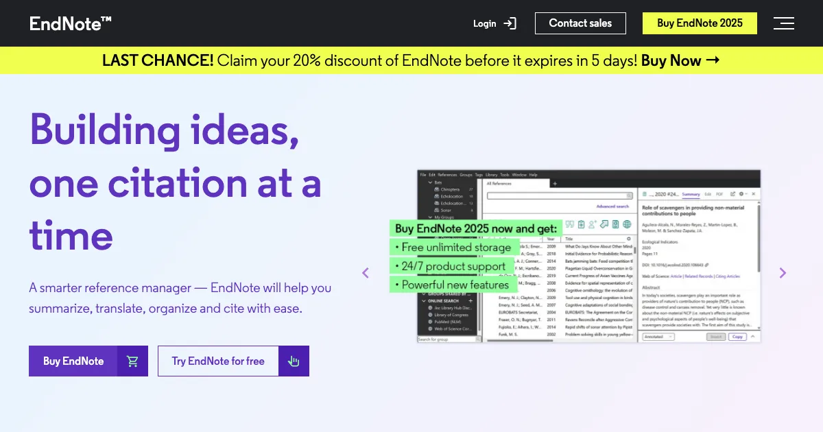 EndNote acelera a pesquisa acadêmica ao encontrar fontes, organizar evidências e resumir papers com mais contexto.