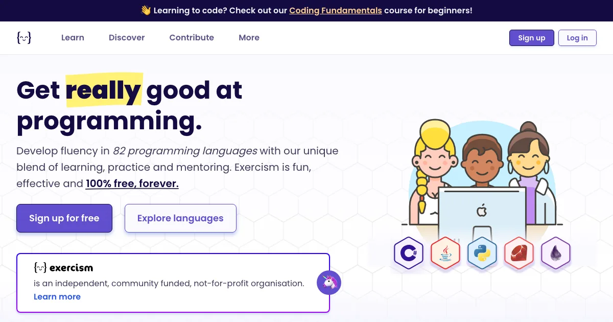 Learn, practice and get world-class mentoring in over 50 languages. 100% free.
