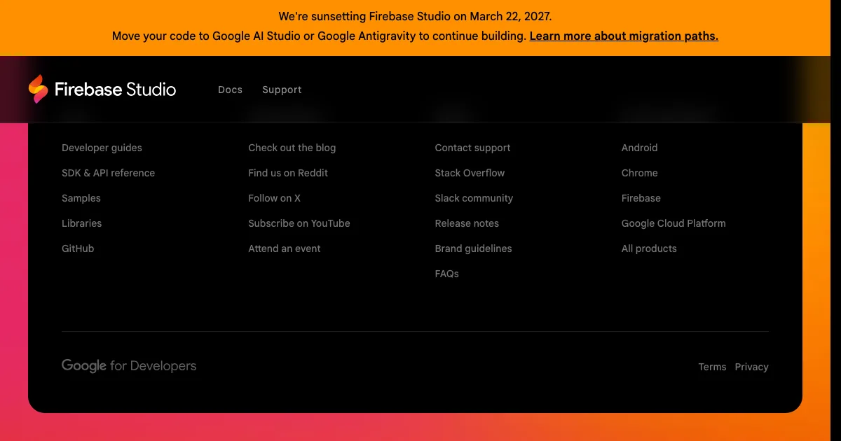 We're sunsetting Firebase Studio on March 22, 2027.