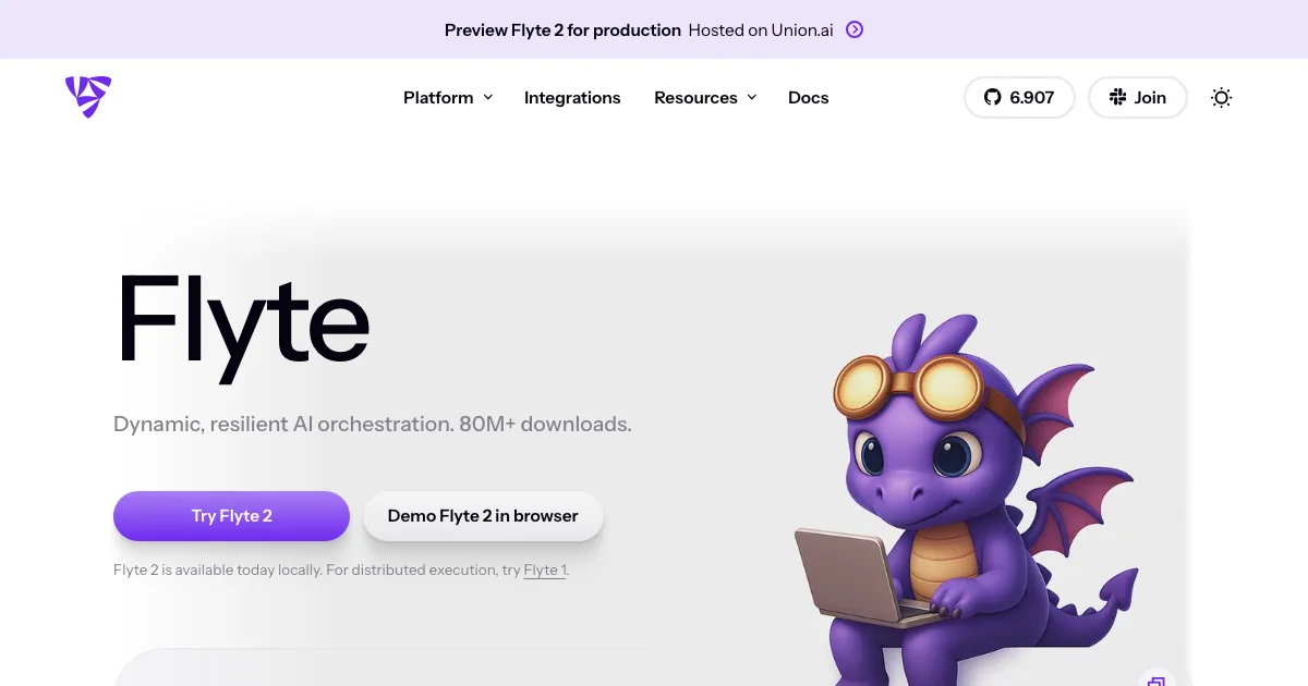 Flyte é uma solução para construir agentes, apps com LLM e fluxos de IA com mais controle técnico. Costuma ser usada por times que precisam combinar prompts, ferramentas, memória, RAG e ações em produção.