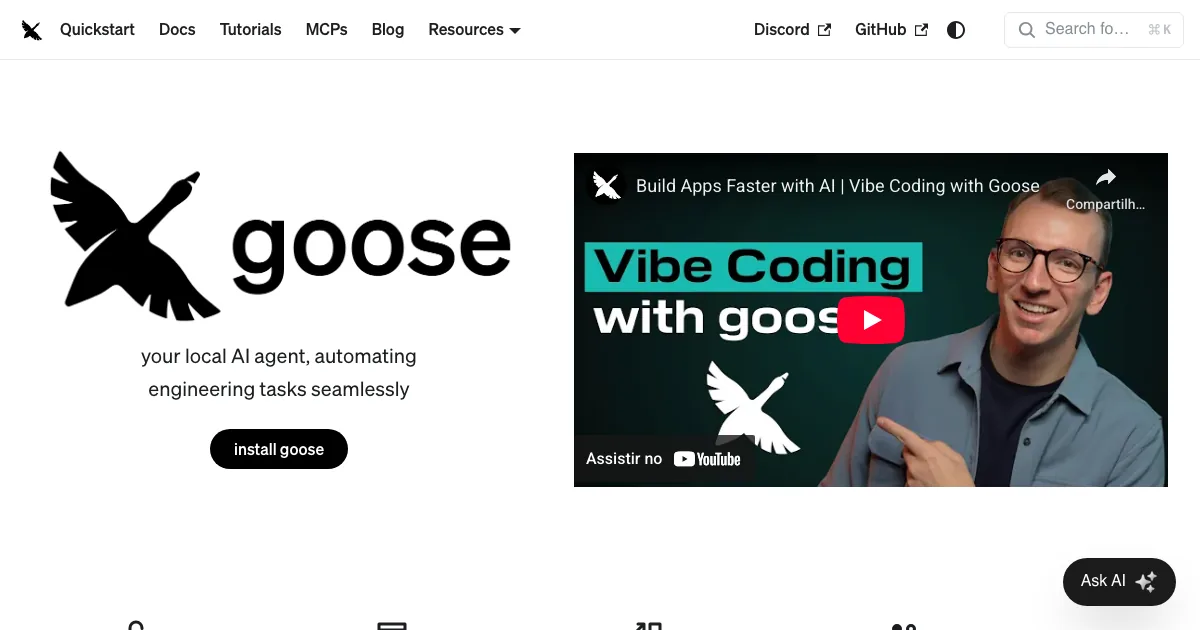 Goose é uma plataforma de cli & terminal que ajuda times técnicos a ganhar velocidade e contexto no desenvolvimento. your open source AI agent, automating engineering tasks seamlessly