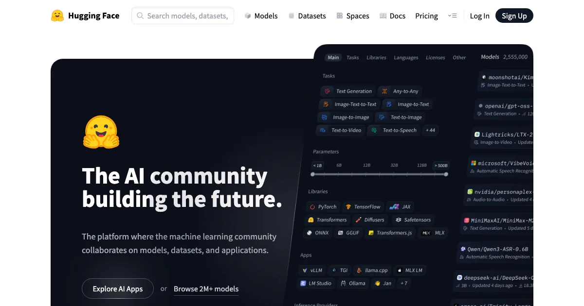 Hugging Face é uma solução para construir agentes, apps com LLM e fluxos de IA com mais controle técnico. Costuma ser usada por times que precisam combinar prompts, ferramentas, memória, RAG e ações em produção.