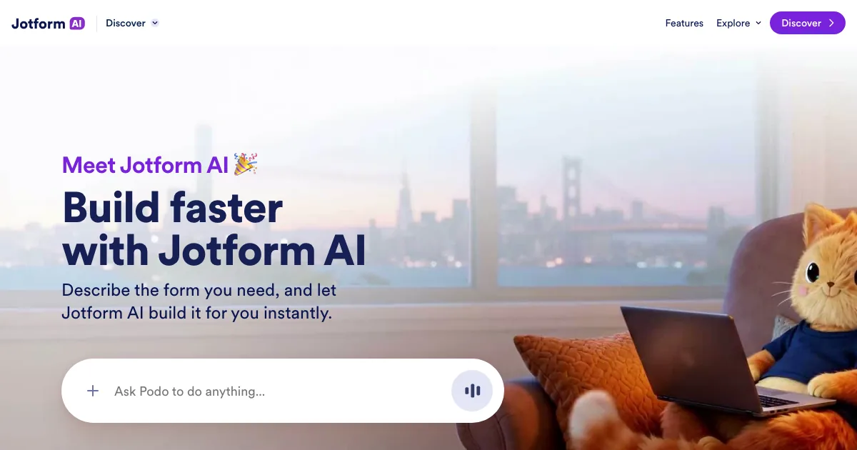 Jotform AI é uma ferramenta de formulários com ia que usa inteligência artificial para acelerar trabalho, organizar informações e automatizar tarefas do dia a dia.