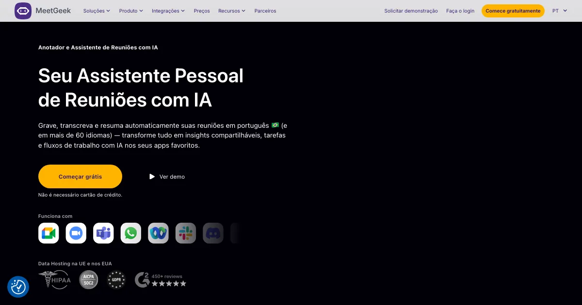 MeetGeek é uma ferramenta de reuniões com ia que usa inteligência artificial para acelerar trabalho, organizar informações e automatizar tarefas do dia a dia.