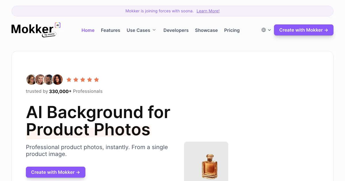 Mokker AI é uma ferramenta de IA da subcategoria produto e e-commerce que ajuda marcas a criar fotos de produto, mockups e criativos mais rápido.