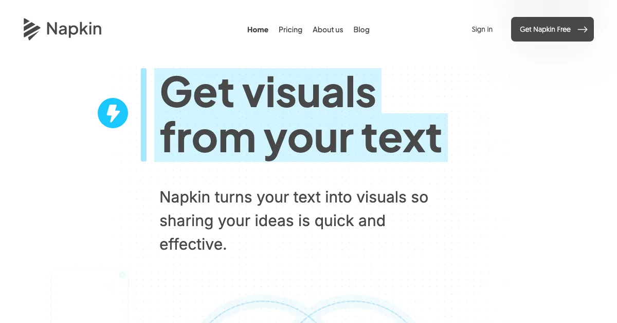 Napkin AI é uma ferramenta de IA da subcategoria diagramas visuais que ajuda equipes a transformar ideias em diagramas, mapas e fluxos com mais clareza.