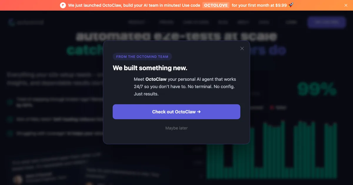 Octomind é uma plataforma de testes automatizados que ajuda times técnicos a ganhar velocidade e contexto no desenvolvimento. Octomind: AI-powered, automated e2e testing, self-healing end-to-end testing integrated into your CI/CD for confident releases.