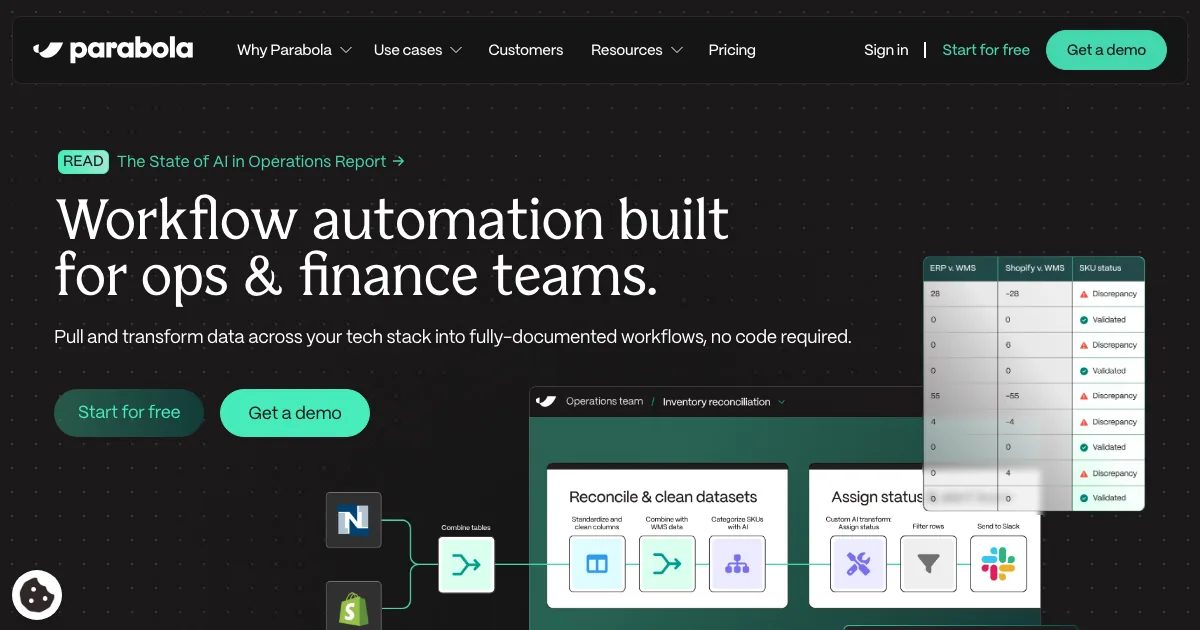 Parabola é uma ferramenta de automação operacional que transforma tarefas manuais, dados dispersos e rotinas repetitivas em workflows mais previsíveis. É útil para equipes que dependem de planilhas, documentos, e-mails ou várias ferramentas conectadas.