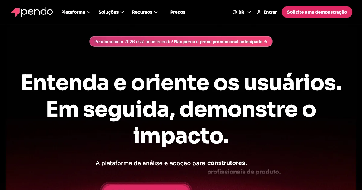 Pendo é uma solução de dados para coletar, organizar, analisar e compartilhar informações relevantes para o negócio. Seus destaques incluem Analytics, Eventos e rastreamento, Dashboards e relatórios.