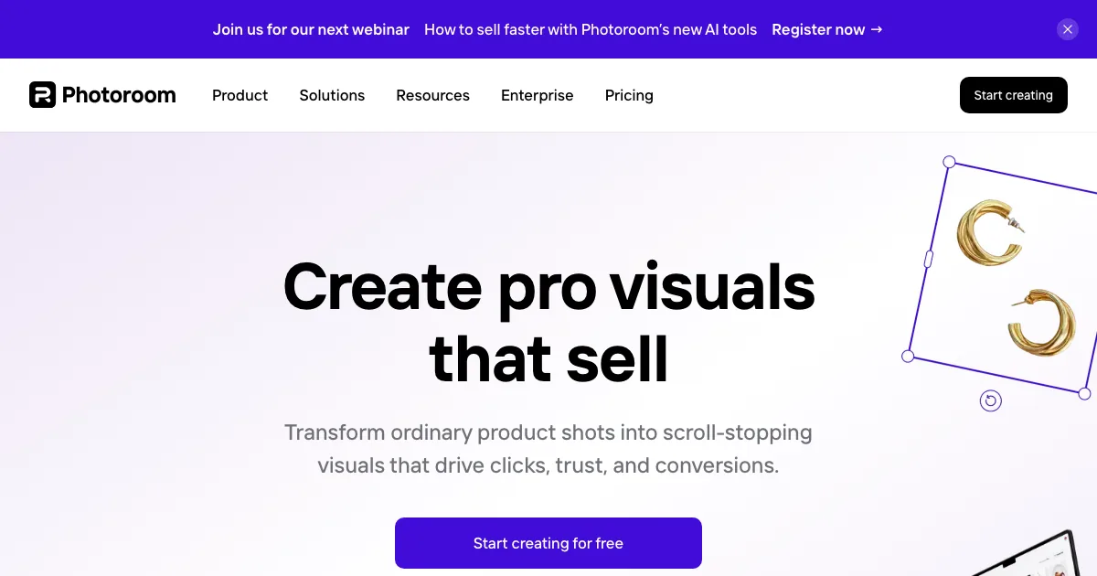 PhotoRoom é uma ferramenta de IA da subcategoria edição de imagem que ajuda profissionais a editar imagens, remover fundo e melhorar fotos com mais rapidez.