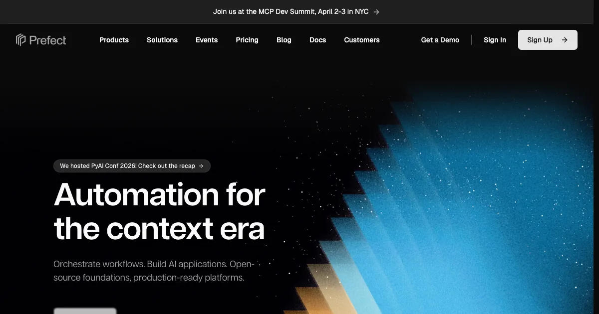Prefect é uma solução para construir agentes, apps com LLM e fluxos de IA com mais controle técnico. Costuma ser usada por times que precisam combinar prompts, ferramentas, memória, RAG e ações em produção.