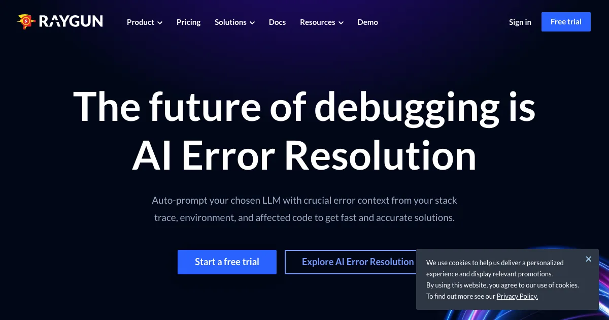 Raygun é uma plataforma de observabilidade & debug que ajuda times técnicos a ganhar velocidade e contexto no desenvolvimento.