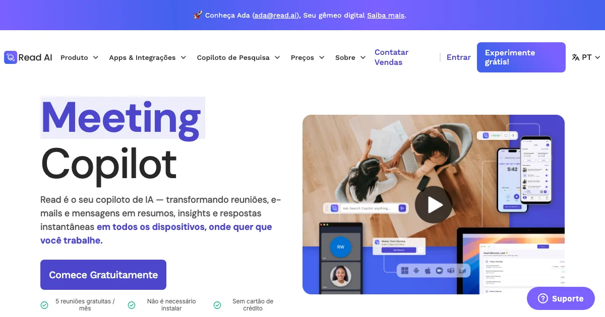 Read AI é uma ferramenta de reuniões com ia que usa inteligência artificial para acelerar trabalho, organizar informações e automatizar tarefas do dia a dia.