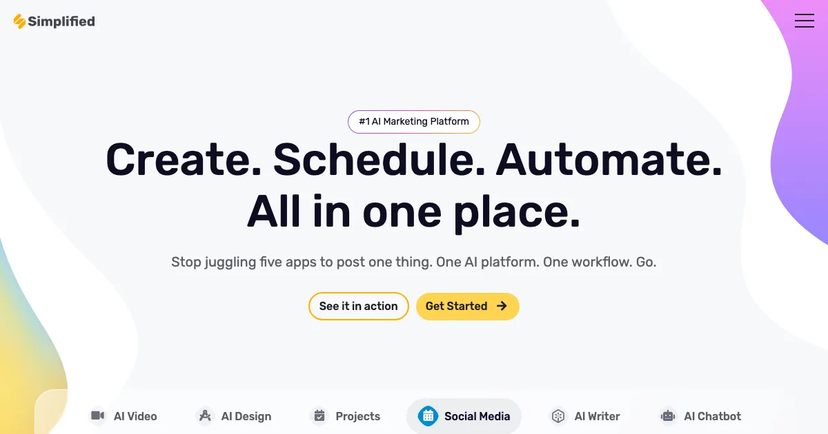 Simplified é uma ferramenta de IA da subcategoria design gráfico que ajuda profissionais a criar peças visuais, layouts e materiais gráficos com mais eficiência.