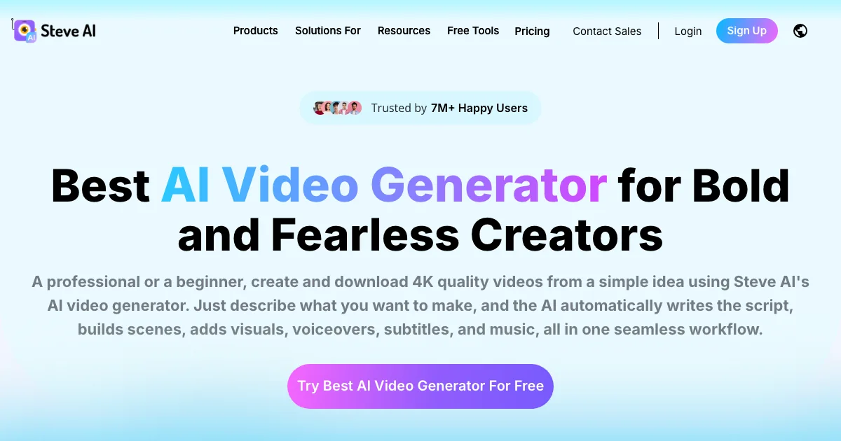 Steve AI é uma plataforma de IA para criar vídeos a partir de texto, roteiros, links, apresentações ou prompts em poucos minutos.