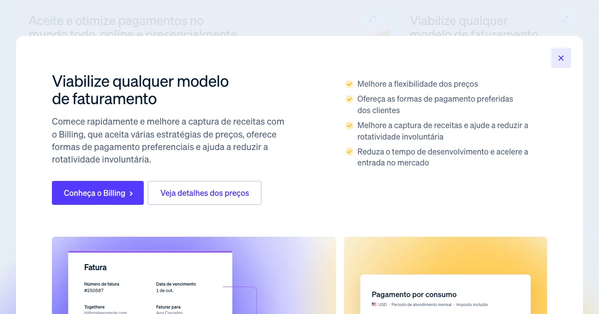 Stripe é uma plataforma de pagamentos e checkout que ajuda equipes a cobrar online com checkout otimizado, gerenciar assinaturas e links de pagamento e vender cursos e produtos digitais.