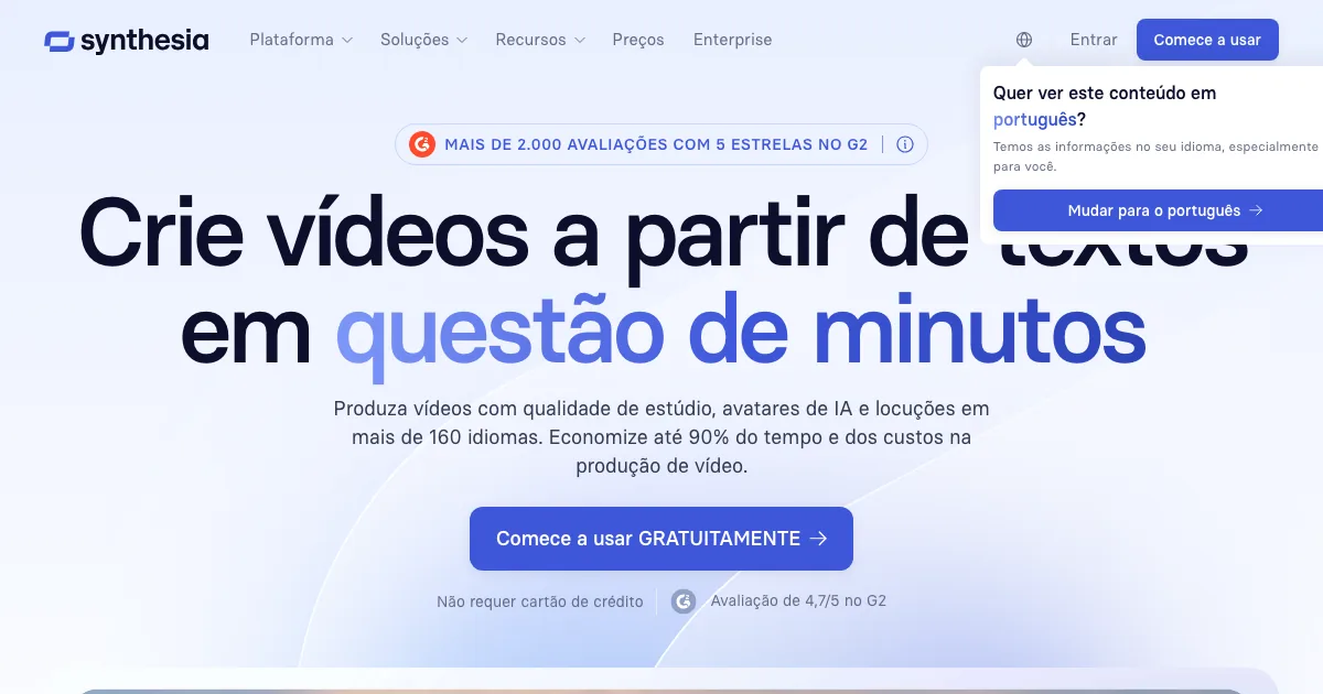 Synthesia é uma ferramenta de avatares e vídeo ia que usa inteligência artificial para acelerar trabalho, organizar informações e automatizar tarefas do dia a dia.
