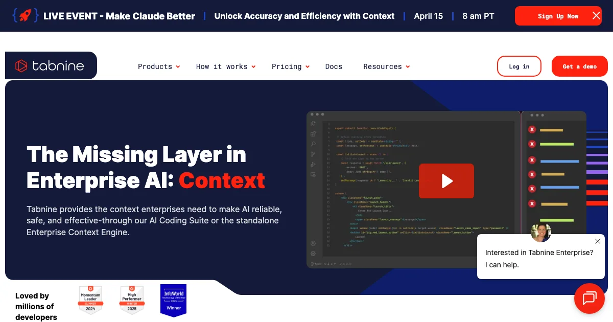Tabnine é uma plataforma de assistente de código que ajuda times técnicos a ganhar velocidade e contexto no desenvolvimento. Tabnine is the AI code assistant that accelerates and simplifies software development while keeping your code private, secure, and compliant.