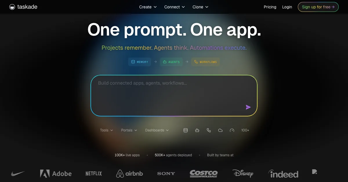 Taskade Agents é uma solução para construir agentes, apps com LLM e fluxos de IA com mais controle técnico. Costuma ser usada por times que precisam combinar prompts, ferramentas, memória, RAG e ações em produção.