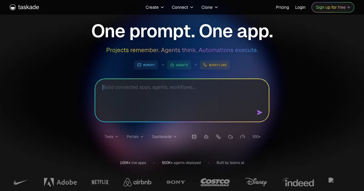 Taskade é uma ferramenta de workspace com ia que usa inteligência artificial para acelerar trabalho, organizar informações e automatizar tarefas do dia a dia.