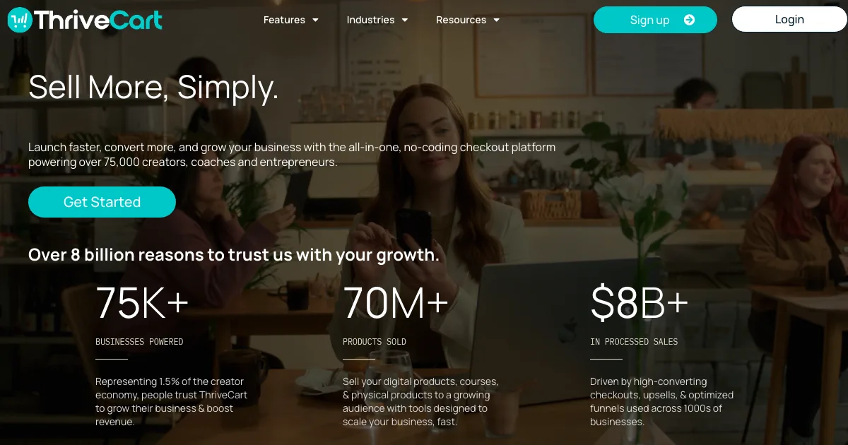 ThriveCart é uma plataforma de pagamentos e checkout que ajuda equipes a cobrar online com checkout otimizado, gerenciar assinaturas e links de pagamento e vender cursos e produtos digitais.