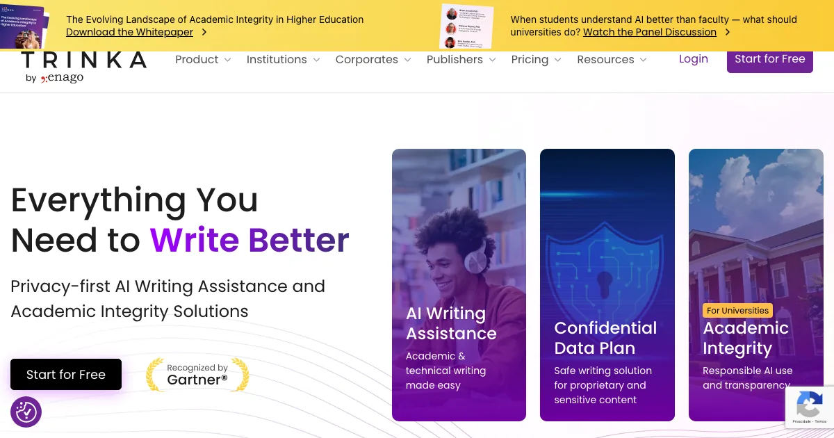 Trinka é uma ferramenta de IA da subcategoria escrita acadêmica que ajuda equipes e profissionais a corrigir gramática, revisar texto e melhorar estilo com mais eficiência.