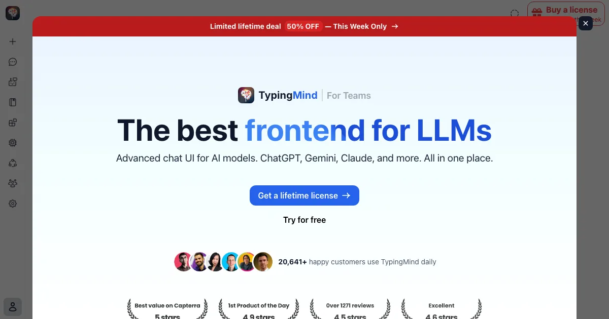 TypingMind é uma ferramenta de interface para llms que usa inteligência artificial para acelerar trabalho, organizar informações e automatizar tarefas do dia a dia.