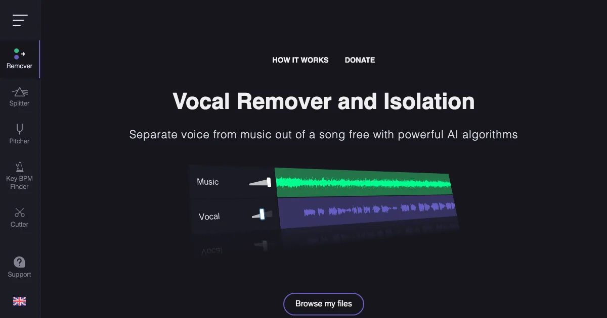 VocalRemover é focada em limpar, separar e melhorar faixas de áudio com recursos de restauração, stems e voz.