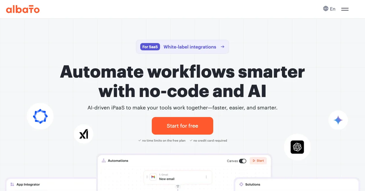 Albato é uma plataforma de automação voltada a processos comerciais, integrações e tarefas repetitivas de times de GTM. Ela ajuda a conectar apps, dados e ações para acelerar prospecção, atendimento ou operação.
