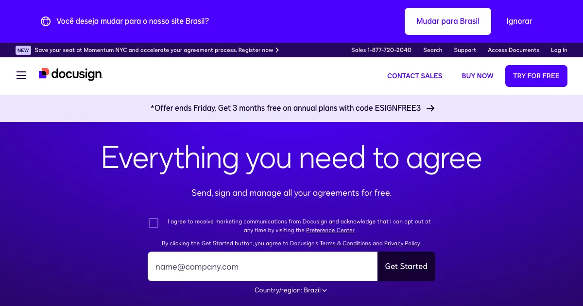 DocuSign é uma plataforma para automatizar documentos, contratos, aprovações e assinaturas em fluxos digitais. Seus destaques incluem Contratos e assinatura eletrônica, Fluxos de aprovação, Templates de documentos.