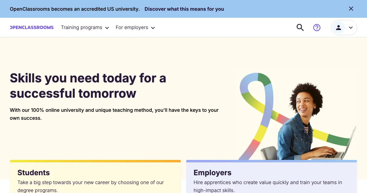 OpenClassrooms oferece cursos e trilhas de aprendizado para desenvolver competências acadêmicas e profissionais.