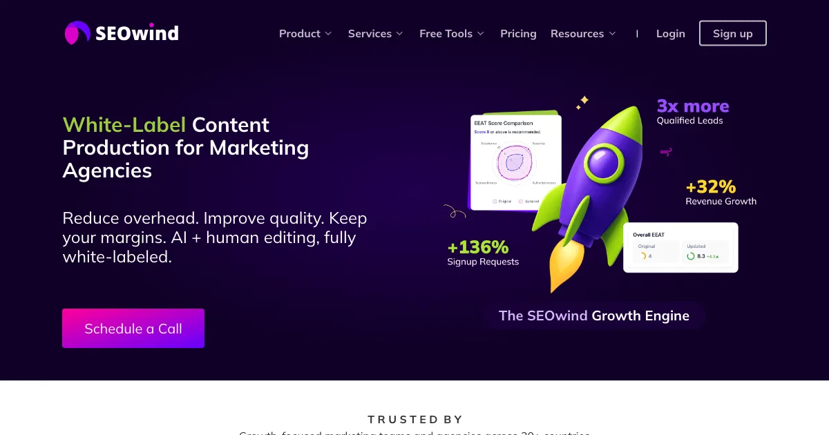 SEOwind é uma ferramenta de IA da subcategoria seo & conteúdo que ajuda equipes e profissionais a criar conteúdo, otimizar seo e pesquisar temas com mais eficiência.