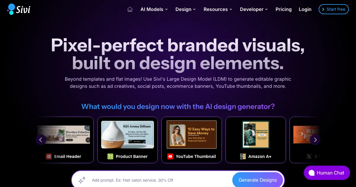 Sivi é uma ferramenta de IA da subcategoria design gráfico que ajuda profissionais a criar peças visuais, layouts e materiais gráficos com mais eficiência.