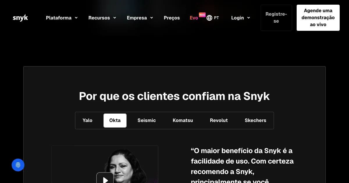 Snyk é uma plataforma de code review & qualidade que ajuda times técnicos a ganhar velocidade e contexto no desenvolvimento. A Snyk é a plataforma confiável para acelerar e proteger o desenvolvimento de aplicativos modernos baseado em IA.