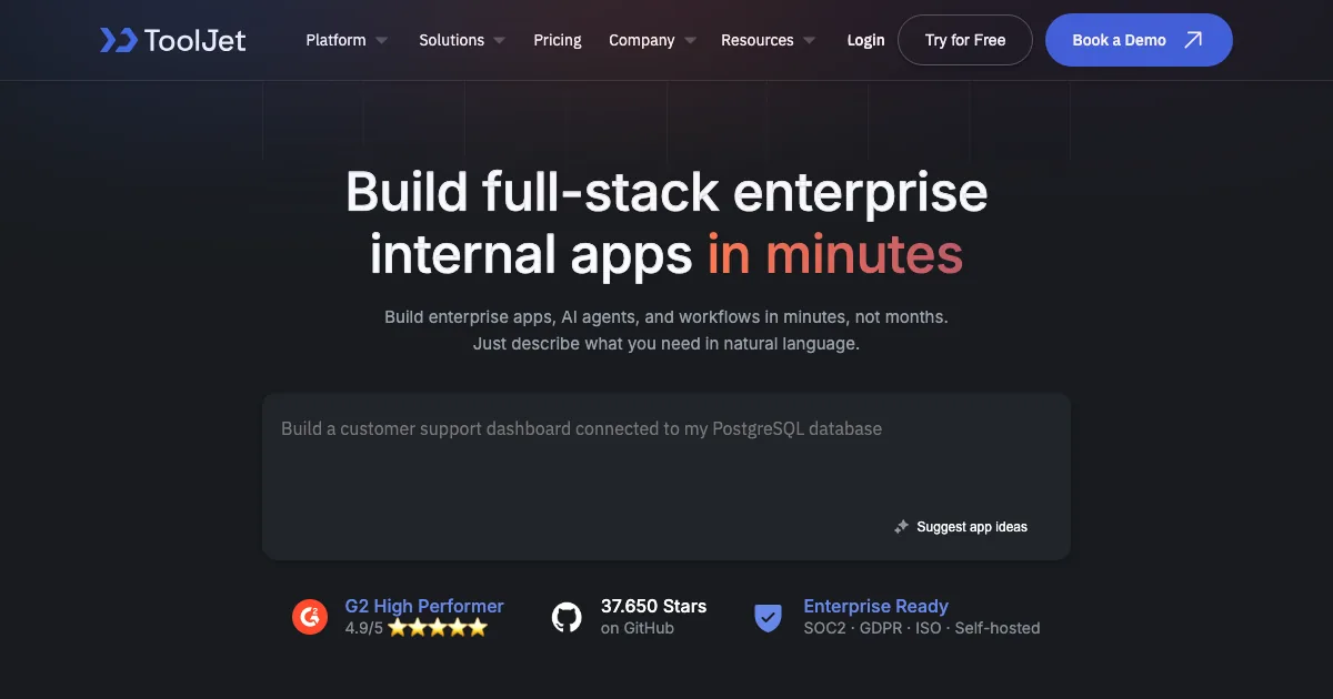 ToolJet é uma plataforma de app builder & ide que ajuda times técnicos a ganhar velocidade e contexto no desenvolvimento. ToolJet helps you build enterprise apps, AI agents and workflows in minutes, not months.