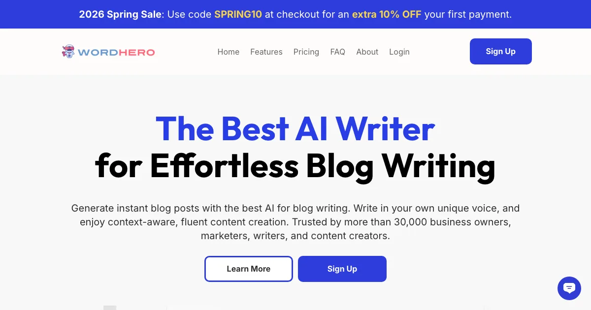 WordHero é uma ferramenta de IA da subcategoria escrita com ia que ajuda equipes e profissionais a criar conteúdo, escrever copy e brainstorming com mais eficiência.